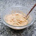 Once everything is well mixed, the batter will have the consistency shown in the picture.