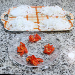 Thinly slice 4 cups of onions and slice ¼ to ½ cup of red hot pepper diagonally. Divide both the sliced onions and peppers into 4 equal portions.