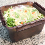 Place a plate or weight on top to press the lettuce down, then seal and refrigerate.