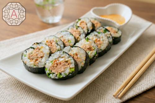 Today I’m sharing a delicious and simple Tuna Gimbap recipe. This version is made with creamy seasoned tuna and fresh garlic chives mixed into the rice, which adds wonderful flavor. It’s finished with a light brush of sesame oil and served with a creamy spicy mayo dipping sauce.