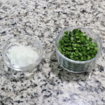 Finely chop 2 Tbsp onion and finely chop some fresh garlic chives. Set them aside.